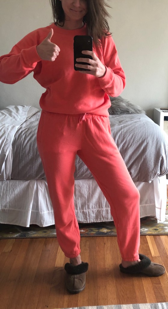 This was a pandemic purchase that made A LOT of sense and saw A LOT of usage when we were all at home – the company’s website (Entireworld) was so cool and while the company is no defunct, this happy sweatsuit lives on!